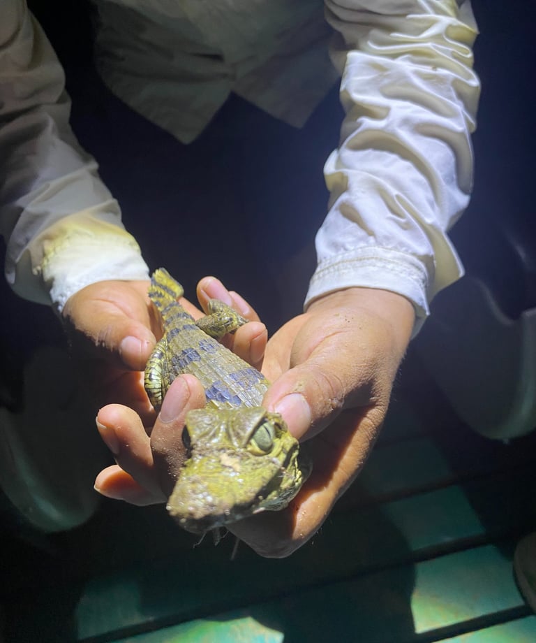 Departing at dawn, we will make our way towards Sandoval Lake within the Tambopata National Reserve. Initially, a 3-Km wooden track would lead us to the edge of the lake where we will find a small rowboat that will take us through lake. In addition to witnessing the lush biodiversity of the surrounding area, we may spot black caimans, herons, turtles, monkeys, ducks, parrots, macaws, and many other species. We will return to our lodge for lunch. Your afternoon activity will include a canopy tower & walk experience including zip lining through the canopy (optional). At night, we wil take a boat ride to explore the riverbanks where we may spot black caimans, nightjars, owls, bats, and capybaras